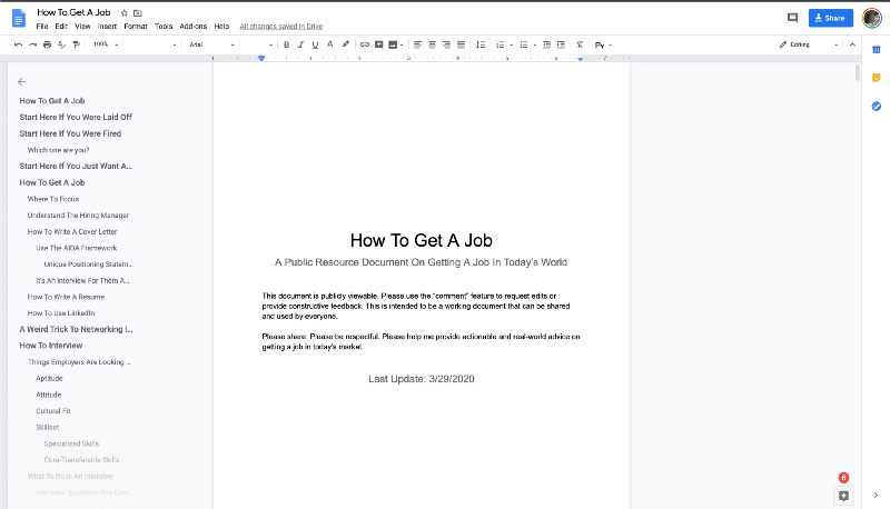 PUBLIC GOOGLE DOC: “HOW TO GET A JOB.”