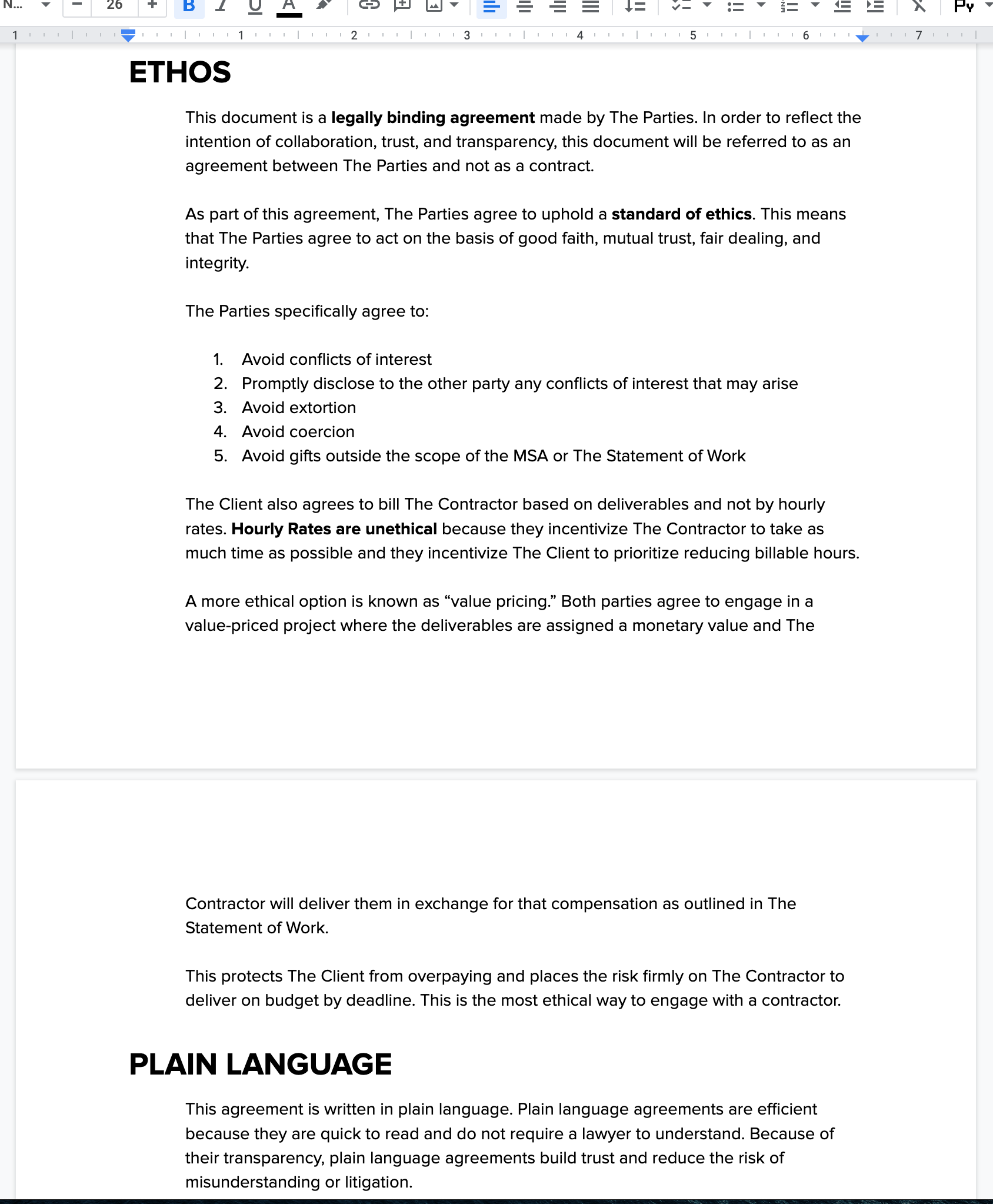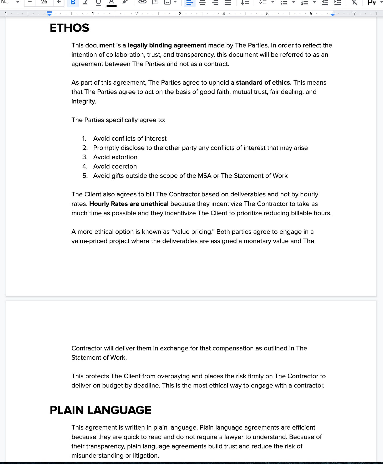 For starters, take a look at the exact language I use at the beginning of my Master of Services Agreement (MSA) for every contract I take on: