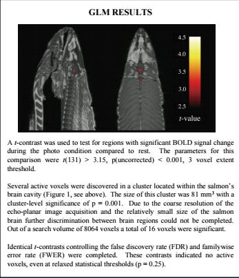 And these scientists found brain activation in a DEAD, frozen salmon.