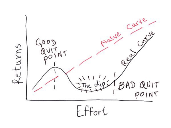 If you’re starting a project with a long dip, like: ending world hunger, then it might take some time before you have success. The longer you persevere through the dip, the higher your chances are of success.